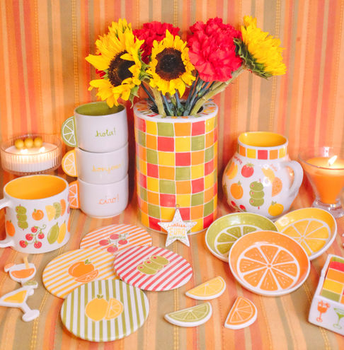collection of mugs, dishes, and little trinkets. From our worktable to your home, enjoy!