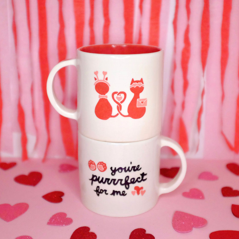 Lovebirds, and latte lovers alike, here’s the perfect cup for your heartwarming brews! This delightful mug, kissed with the essence of romance and felines, featuring a bold red interior and a charming design, it’s infused with the magic of love! Whether you're sipping on sweet cocoa while penning a love letter or fueling up for a day of matchmaking mischief, this mug is a reminder that love—like a perfectly brewed cup—should always be warm, bold, and a little bit enchanting.